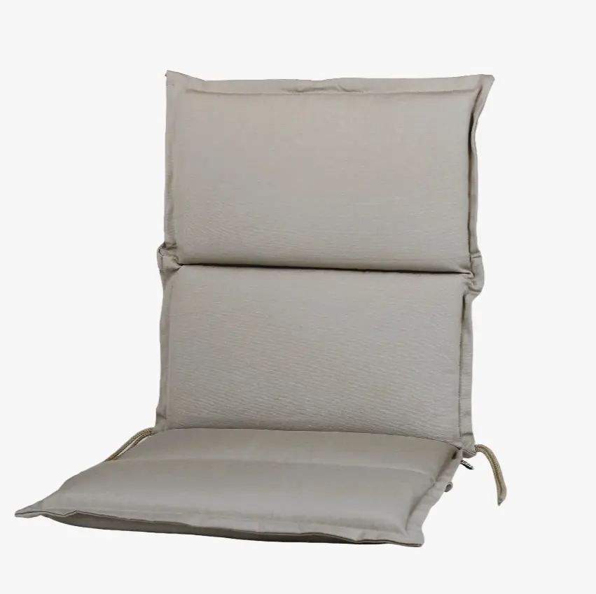Komfortpolster ca. 5cm dick mit 2 cm Stehsaum umlaufend. Kordeln am Sitz, Diagonalband am Rücken.